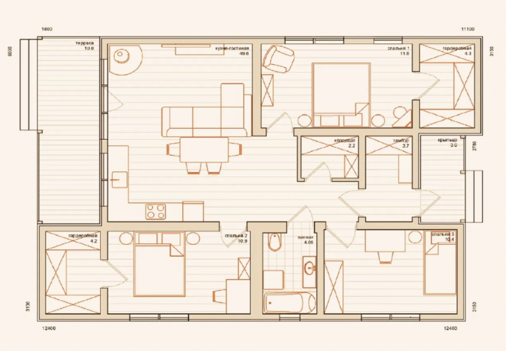 • Количество спален 3