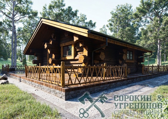 Проект сруба русской бани из бревна диаметром 300мм, общей площадью 34м2. Проект выполнен в русском стиле по классической технологии ручной рубки в обло. Баня имеет комнату отдыха, санузел, помывочную комнату и парную. Баня проектировалась по индивидуальному заказу для установки на понтоны, как плавучая баня, и совсем скоро она будет плавать по Саяношушенскому водохранилищу в горах Хакасии.