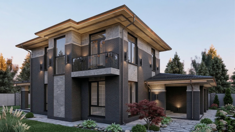 Отделка фасада - клинкерная плитка под кирпич и гранит